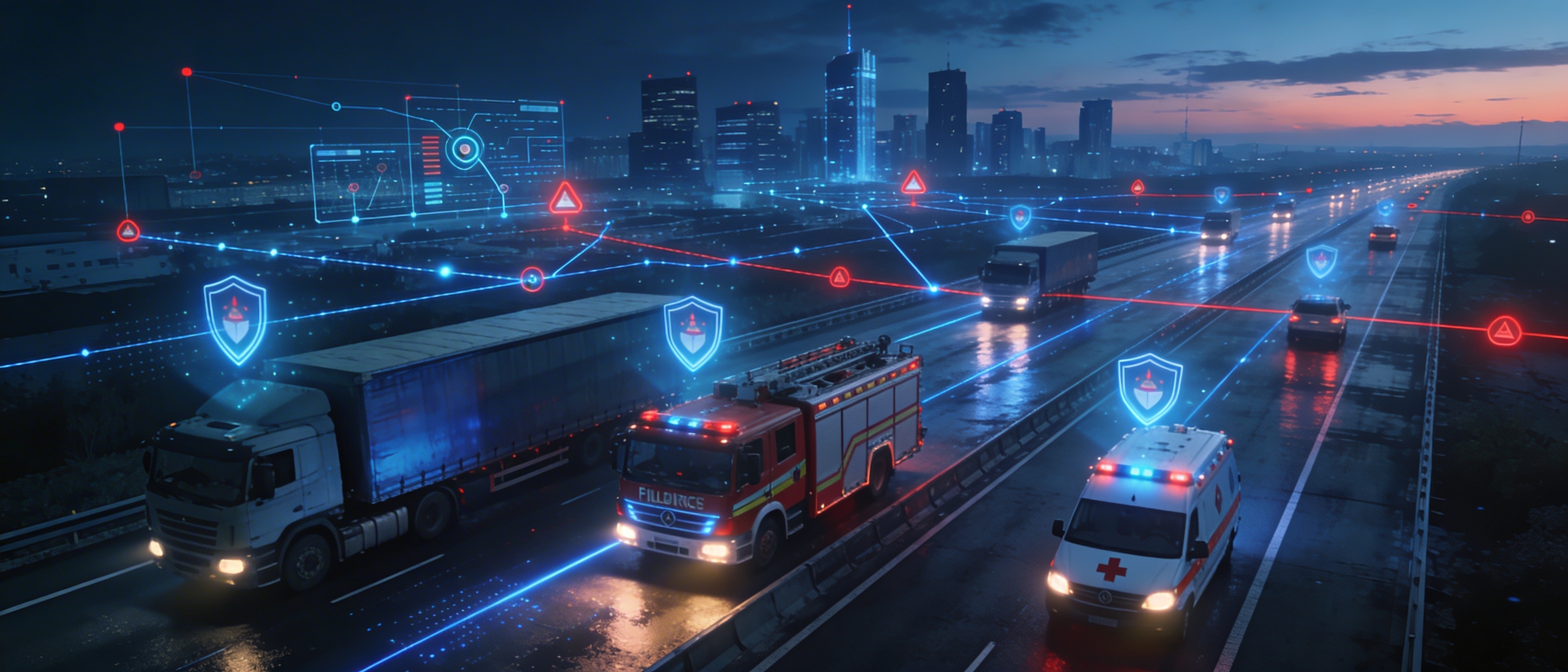La technologie V2X qui alerte les conducteurs en temps réel à l'approche de véhicules d'urgence. Directement dans Waze et les tableaux de bord connectés.